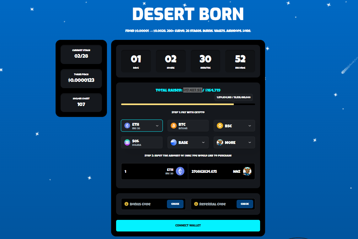 Each phase tightens token supply, fueling a self-reinforcing scarcity model. Add to that a referral system offering a 10% bonus to both buyer and referrer, and the momentum becomes unstoppable.