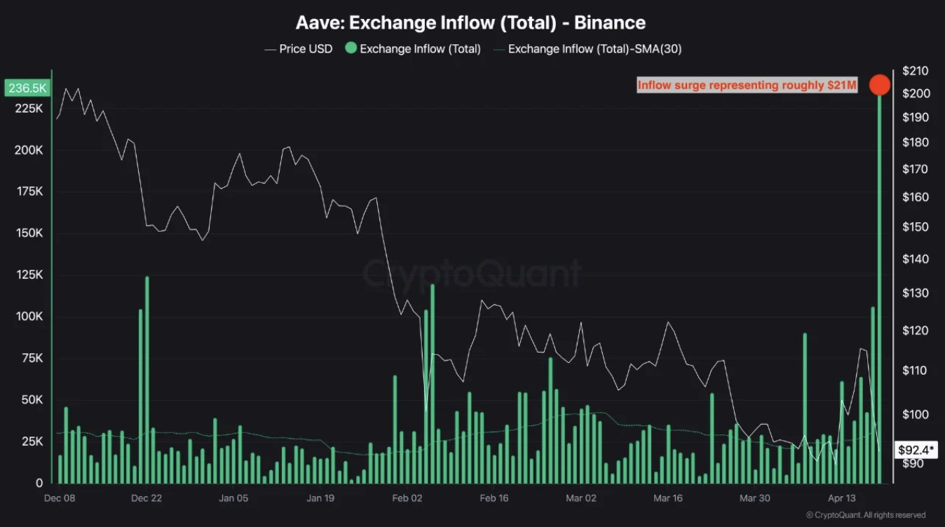 In total, cumulative inflows across exchanges exceeded 355,000 AAVE, equivalent to roughly $32 million.