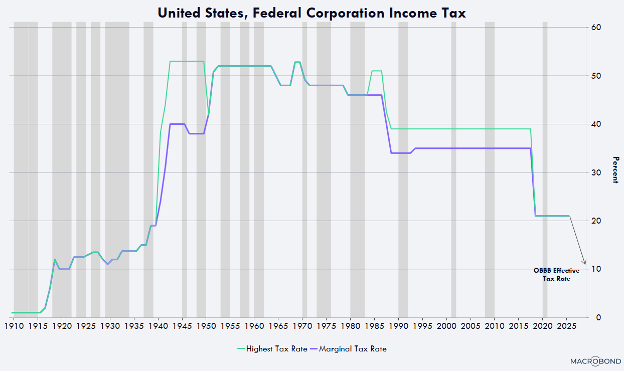 Notably, the effective corporate tax rate has declined, following an accelerated depreciation on manufacturing facilities, equipment, software, and domestic research and development, as highlighted by Wood.