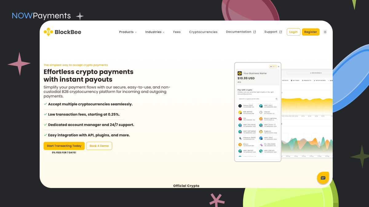 With transaction fees starting at 0.5% and settlement times often completed within minutes, NOWPayments appeals to merchants focused on efficiency and cost effectiveness.
