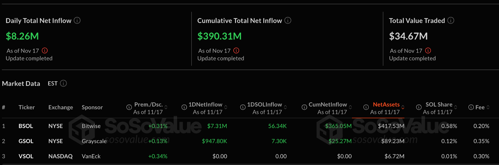 Solana ETFs have also remained resilient, adding $8.26 million on Monday and pushing total inflows since October to $390 million.