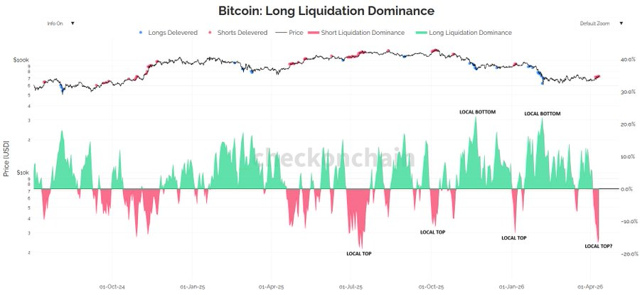 Ted presented a more cautious outlook and said Bitcoin had just recorded its largest short-position deleveraging event of 2026. According to him, that signal has often appeared near local tops.