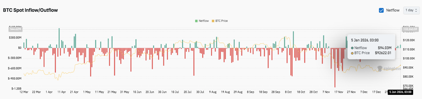 Additionally, early January recorded mildly positive netflows near $94 million. This shift signals improving demand and reduced selling pressure. Hence, spot activity now supports short-term price stability.