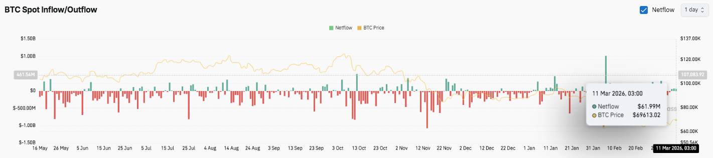 Resistance ceiling: $70,000 remains the most important level to reclaim for short-term bullish momentum. A successful move above this mark could signal the start of a broader recovery rally.