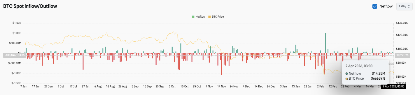 Meanwhile, spot flow data shows consistent outflows dominating the market. Frequent selling activity reinforces bearish pressure during declines. Although occasional inflow spikes appear, they remain short-lived and weaker.