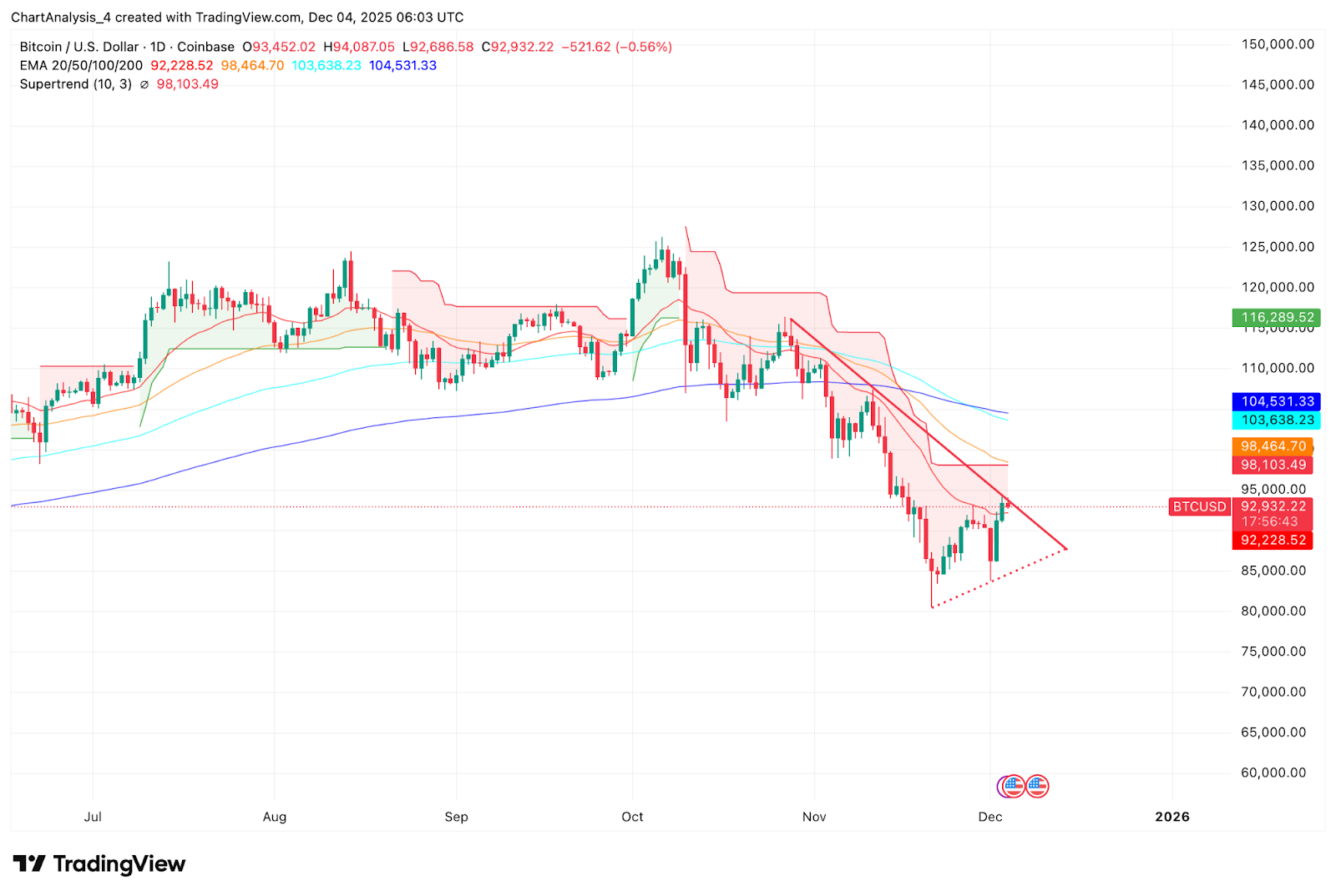 - 200 day EMA: $104,531