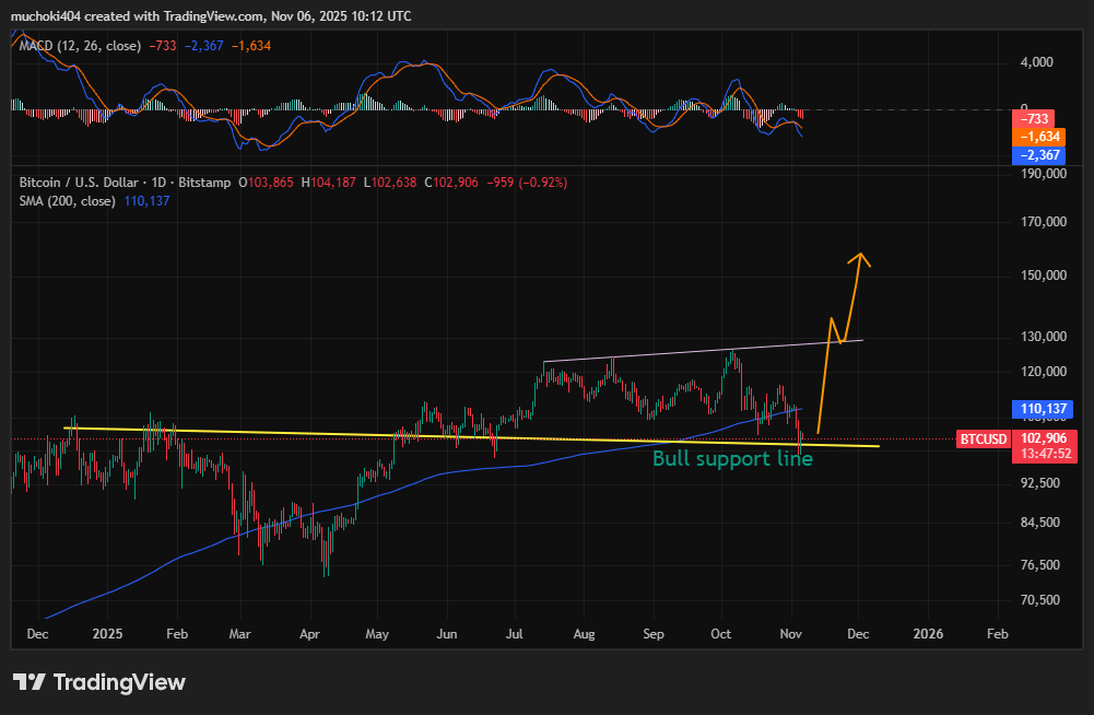 However, the slow capital flow to Bitcoin, as observed by the spot BTC exchange-traded funds (ETFs) and the Digital Asset Treasuries (DATs), may weigh down on midterm bullish sentiment. According to Aksel Kibar, a popular market chartist, it is paramount for the BTC/USD pair not to close below the support level around $98.2k.