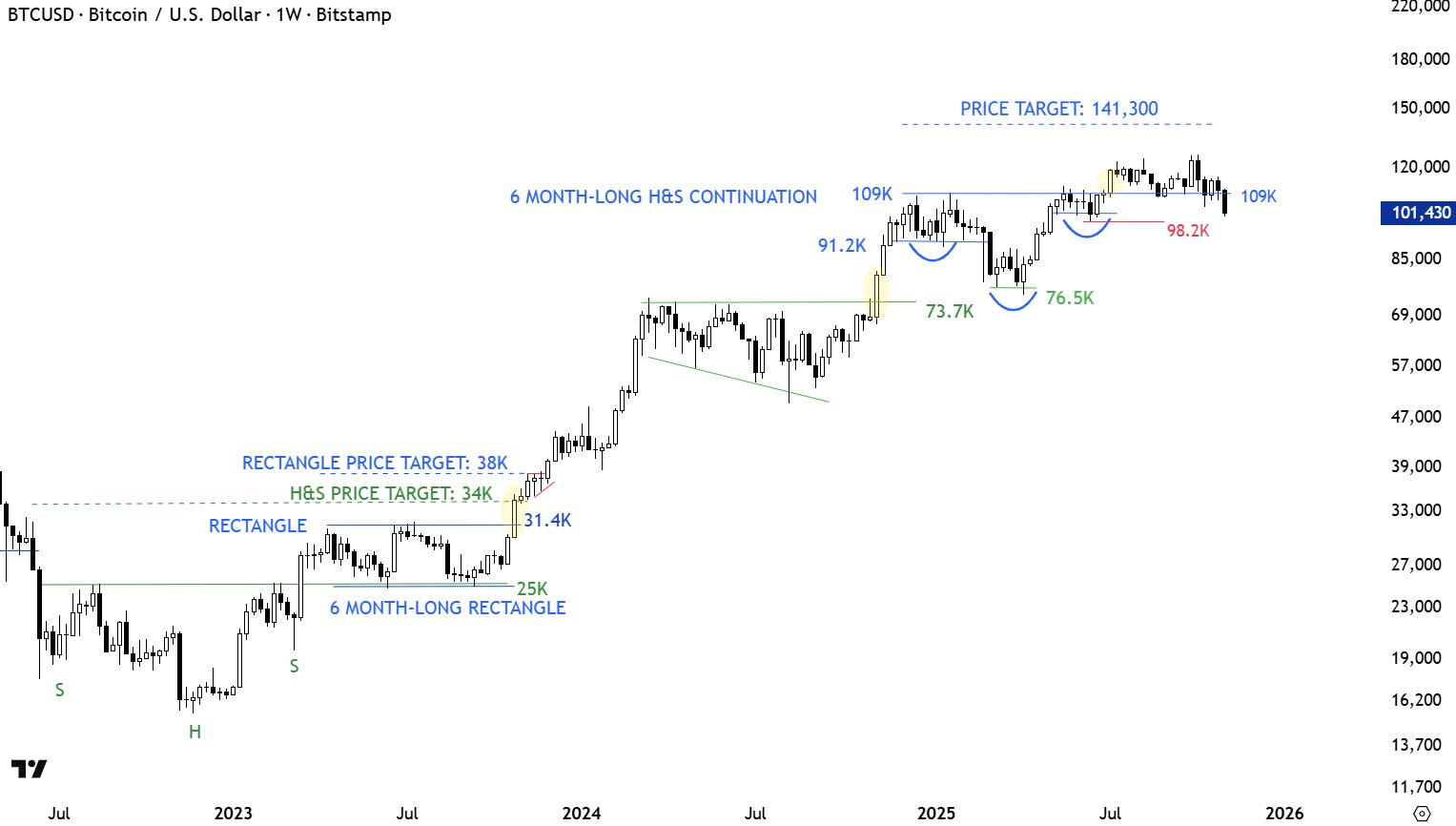 The Bitcoin price has retested and rebounded a crucial support level in the past few days. After teasing below $100k earlier this week for the first time since June this year, the BTC price is potentially forming a reversal pattern.