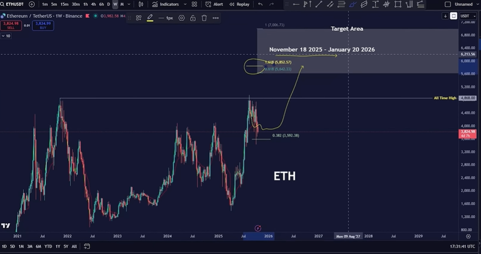 The analyst expects ETH to outperform Bitcoin through 2026, targeting a BTC ratio of 0.06, a sign of relative strength ahead.