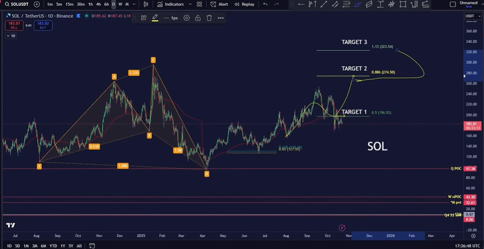 Falling below that mark may lead to a short dip toward $150, which the expert sees as a better entry zone. Despite this pullback, Solana could recover to $274 or $323 by year-end if broader sentiment improves.