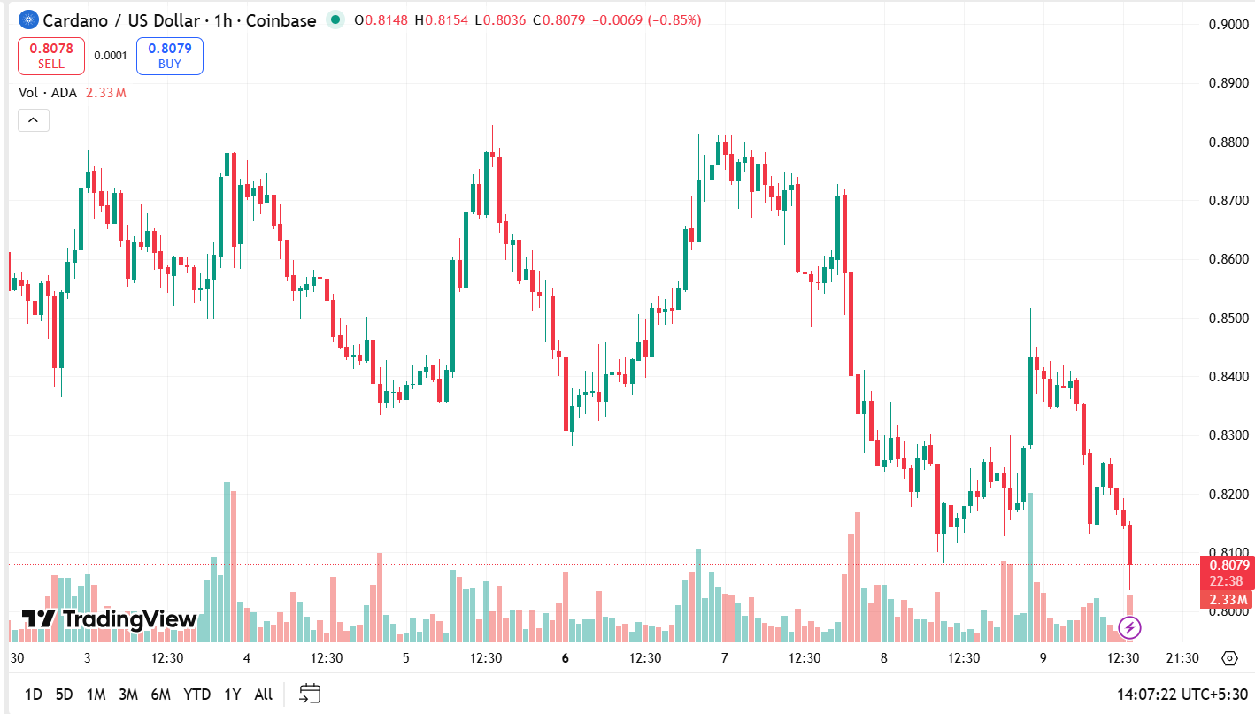 - Cardano (ADA) holds $0.80 after $0.85 breakout as whale flows strengthen on-chain liquidity.