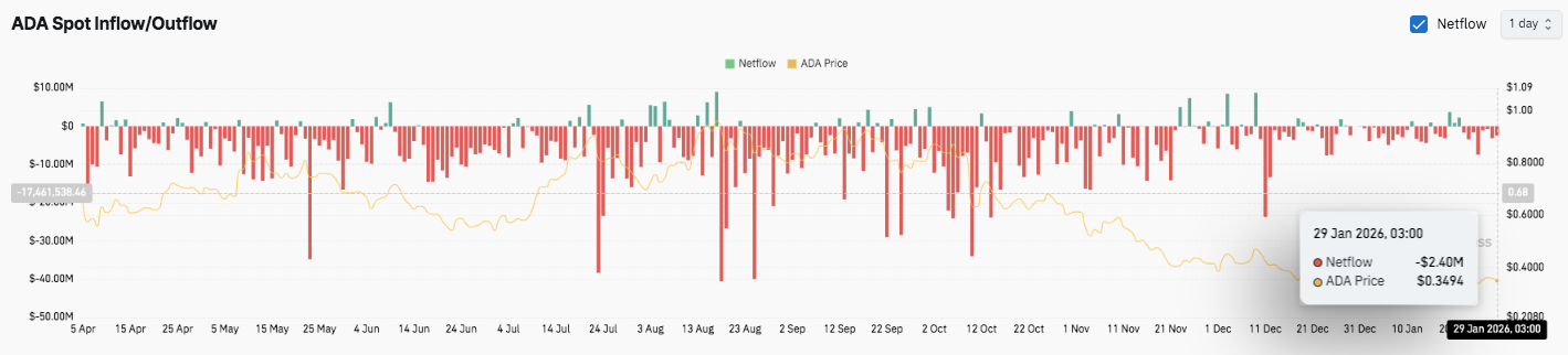ADA’s near-term direction depends on whether buyers can defend $0.348 long enough to challenge the $0.382–$0.400 resistance band. Stronger inflows and reclaiming $0.405 would shift momentum in favor of bulls.
