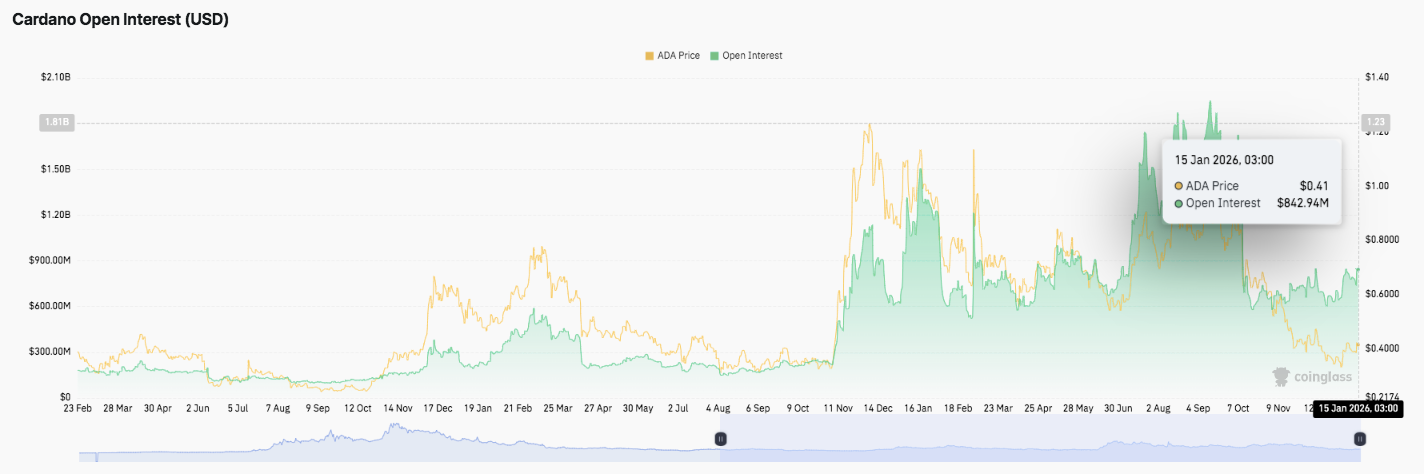 On the upside, ADA faces near-term resistance around $0.414 to $0.415, an area tied to earlier selling pressure. A decisive break above this zone could unlock a move toward $0.437.