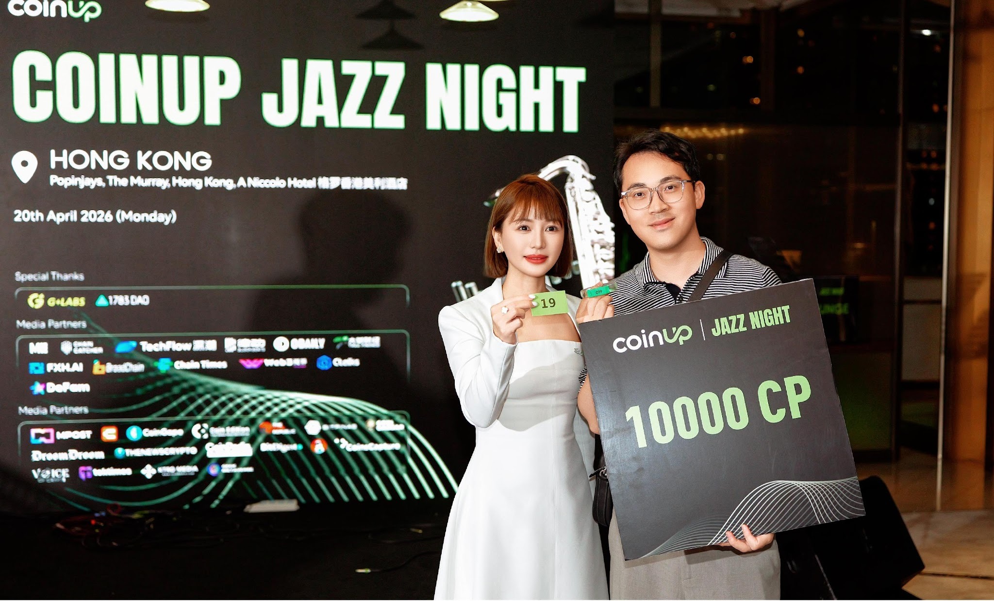 On April 28, 2026, CoinUp successfully hosted its CoinUp Jazz Night at The Murray Hotel in Hong Kong. Held from 19:00 to 23:00, the event brought together traders, project teams, investors, industry KOLs, and media from around the world for an evening that blended live jazz, industry dialogue, and high-value networking against the backdrop of Victoria Harbour.