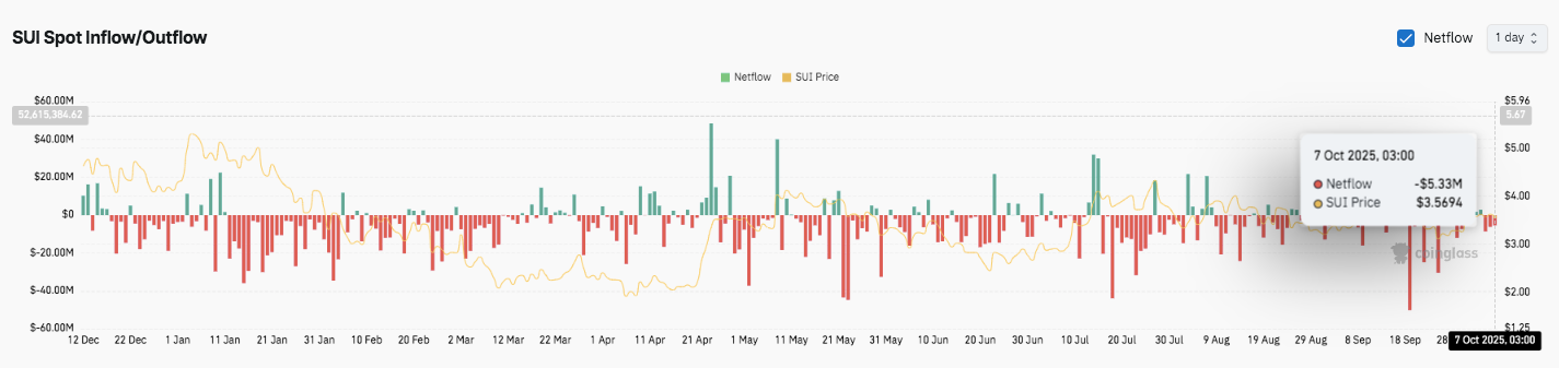 Despite improving technical conditions, on-chain data shows consistent outflows throughout 2025, reflecting investor caution. The largest withdrawal spike occurred in late August, followed by a mild recovery phase. As of early October, daily net outflows stood at roughly $535,000.