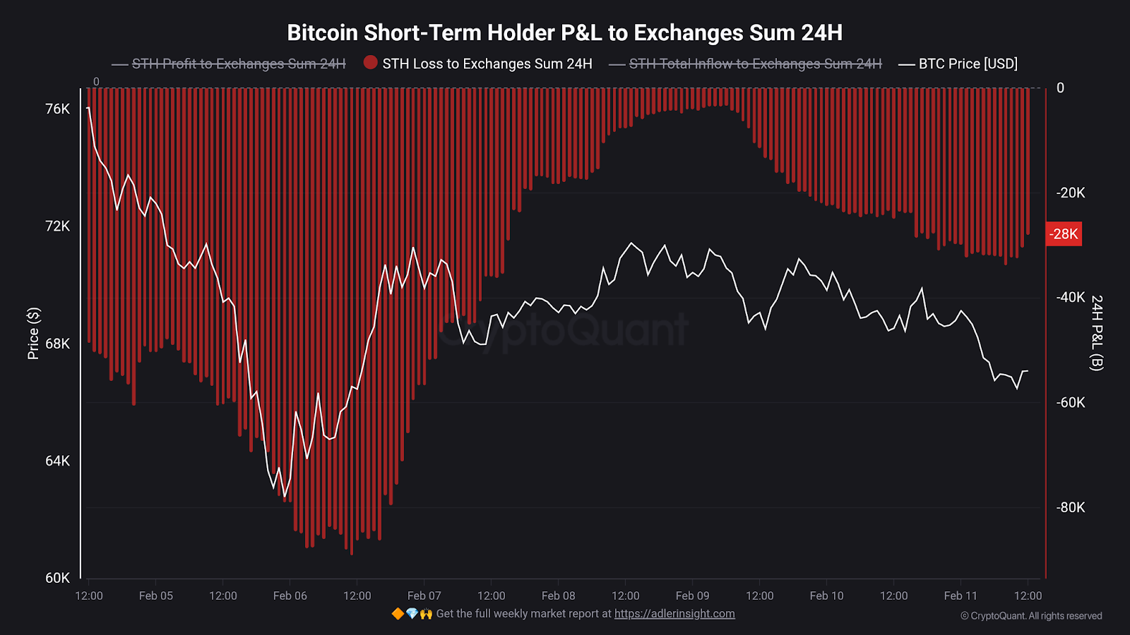 The notable unrealized losses in the DATs sector has raised concerns of potential capitulation alongside other whale investors. According to onchain data analysis from CryptoQuant, Bitcoin’s short-term holders have been sending their coins to exchanges in losses potentially to sell.