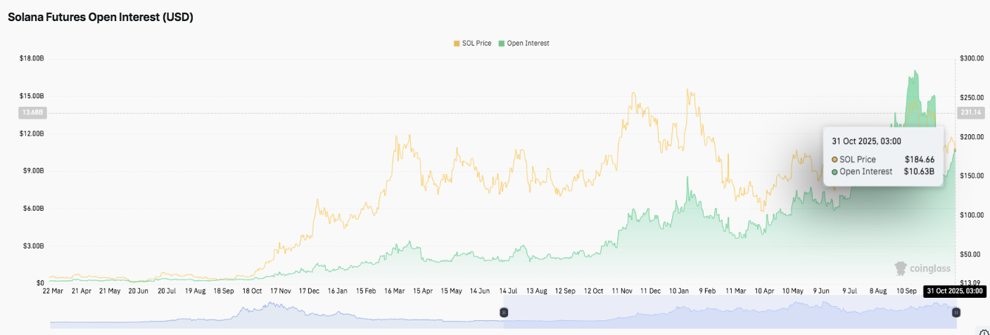 Unterdessen stieg das Open Interest für Futures von Solana am 31. Oktober auf 10,63 Mrd. $, was auf eine erhöhte Spekulationsaktivität hindeutet. Dieser Anstieg folgte auf eine ruhige Konsolidierungsphase zu Beginn des Quartals.