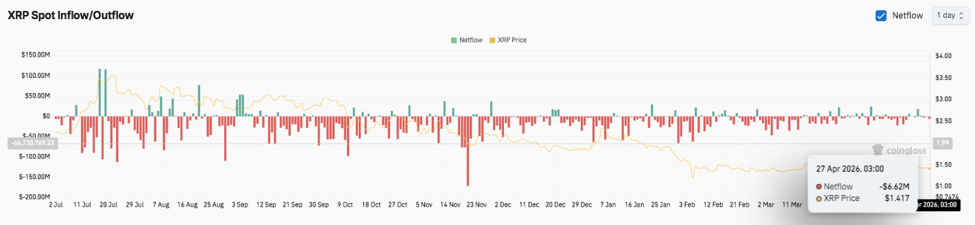 Der nächste Schritt von XRP hängt davon ab, wie der Preis um die Unterstützung von 1,40 $ und das Widerstandsband von 1,45 $ reagiert. Ein Halten über der Unterstützung würde es den Käufern ermöglichen, Schwung für einen weiteren Ausbruch aufzubauen. Folglich könnte eine stärkere Teilnahme den Preis in Richtung 1,55 $ und darüber hinaus treiben.