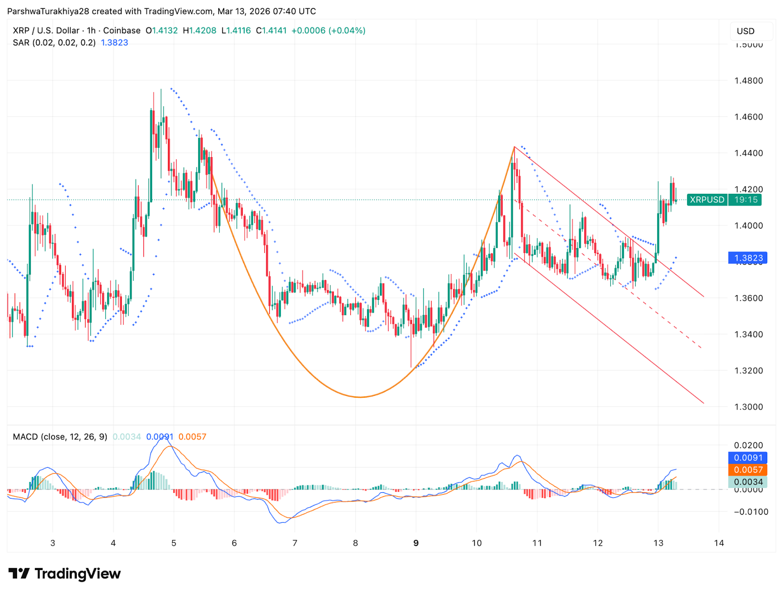 1-Stunden-Grafik: Ausbruch von Cup and Handle mit MACD-Bestätigung