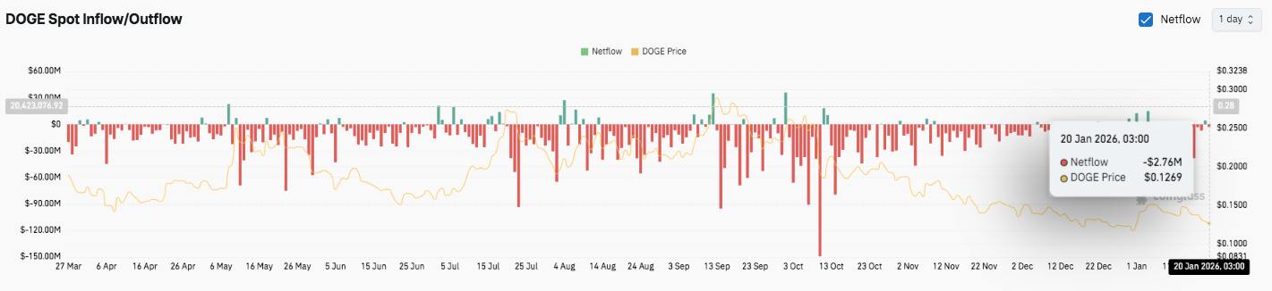From November into January, outflows persisted, signaling continued exchange deposits and profit-taking. The latest net outflow near $2.76 million aligns with declining prices and weak demand. Consequently, DOGE faces headwinds unless buyers return with conviction and volume.