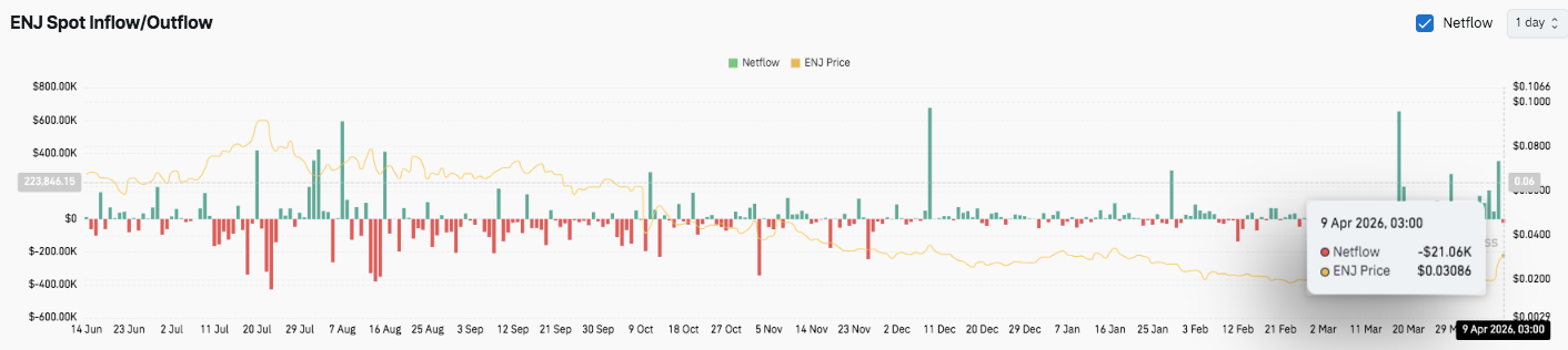 The ENJ outlook depends on whether buyers defend $0.025 support long enough to challenge $0.0318 resistance. If bullish momentum builds, price could extend toward $0.0456 and higher. Additionally, strong volume and inflows would support this scenario.