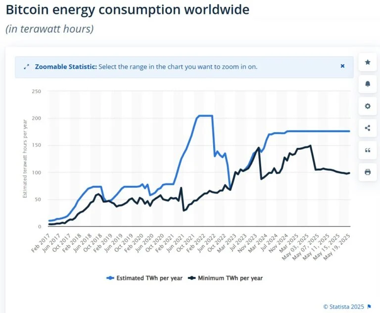 Su perspectiva también conecta con la de los investigadores de Bitcoin, que afirman que la red utiliza cada vez más energía renovable y sin energía. Las estimaciones en 2025 muestran que más de la mitad de la actividad minera de Bitcoin proviene de fuentes sostenibles.