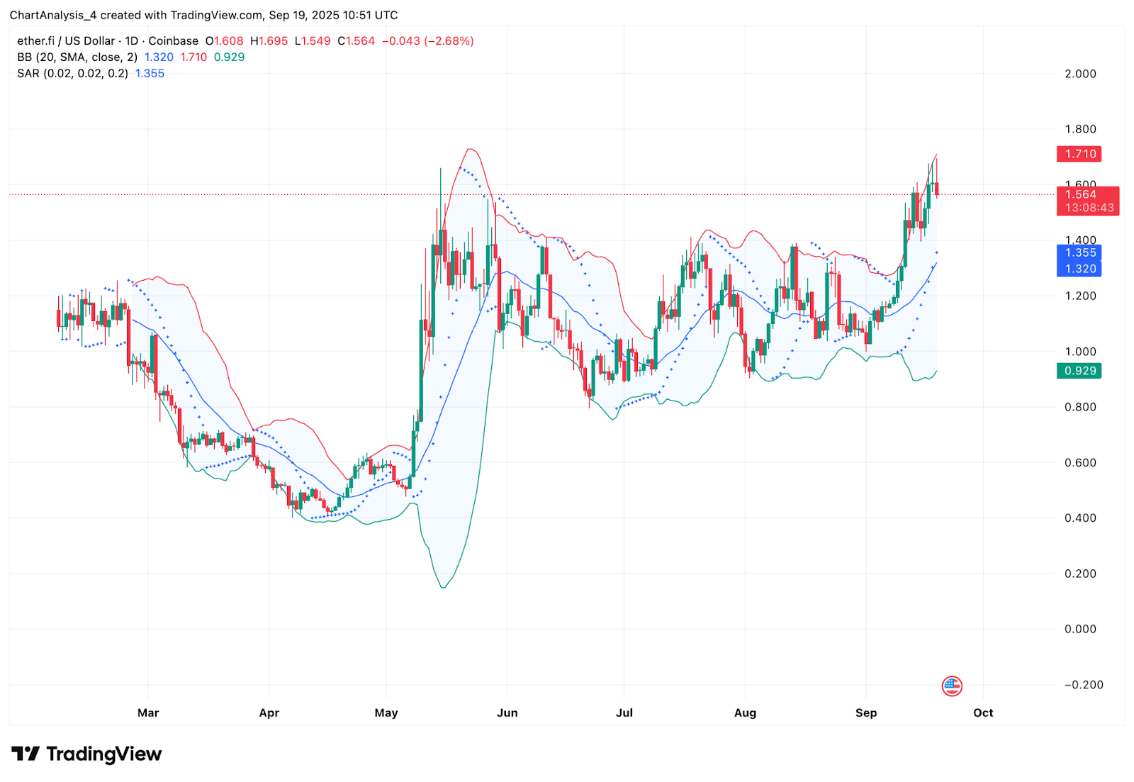 Predicción de precios de ether.fi (ETHFI): Bandas de Bollinger y SAR parabólico