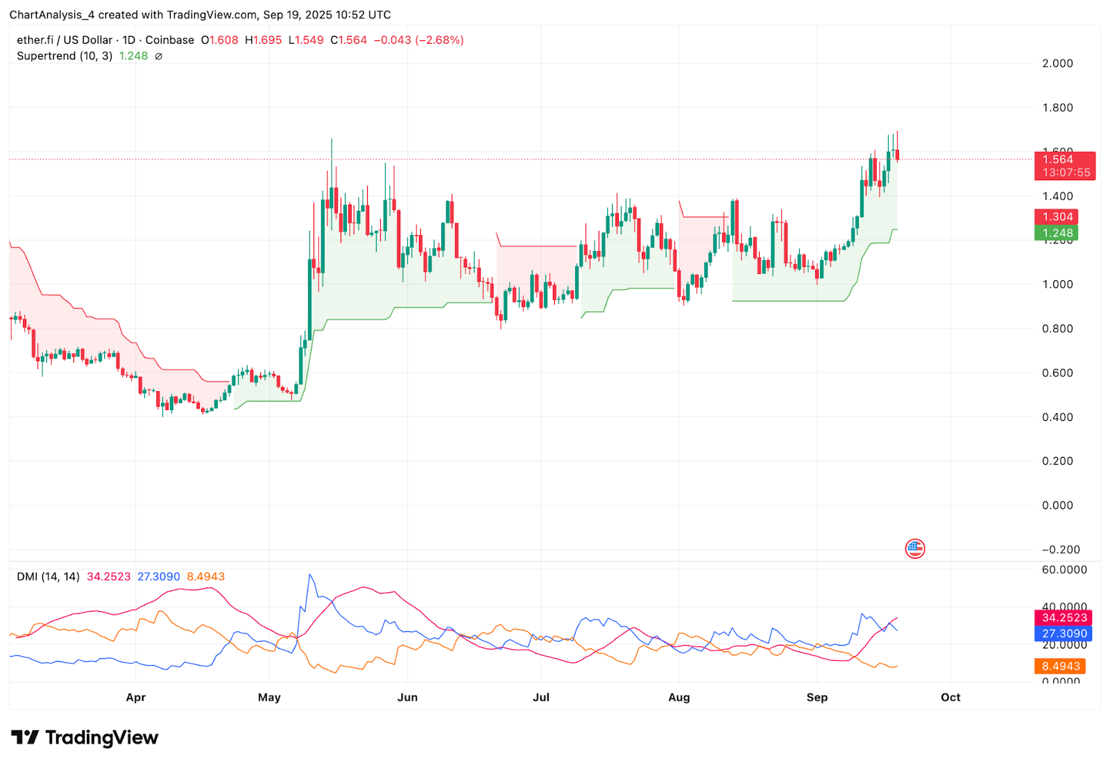 Predicción de precios de ether.fi (ETHFI): supertendencia y fuerza del DMI