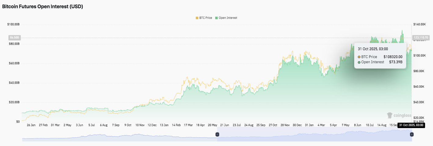 El interés abierto en los futuros de Bitcoin ha crecido considerablemente a lo largo de 2025, alcanzando los USD 73,39 mil millones para el 31 de octubre. Esta cifra representa un aumento de más del triple desde enero.