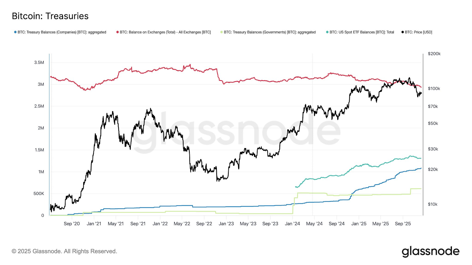 Históricamente, una caída en la oferta de Bitcoin en los exchanges centralizados ha provocado un sentimiento alcista debido a la dinámica de la oferta y la demanda. El éxito de Strategy en la implementación de su plan de tesorería de Bitcoin ha atraído a decenas de empresas similares, aumentando así sus participaciones en un 448% desde 2023, hasta aproximadamente 1,08 millones.