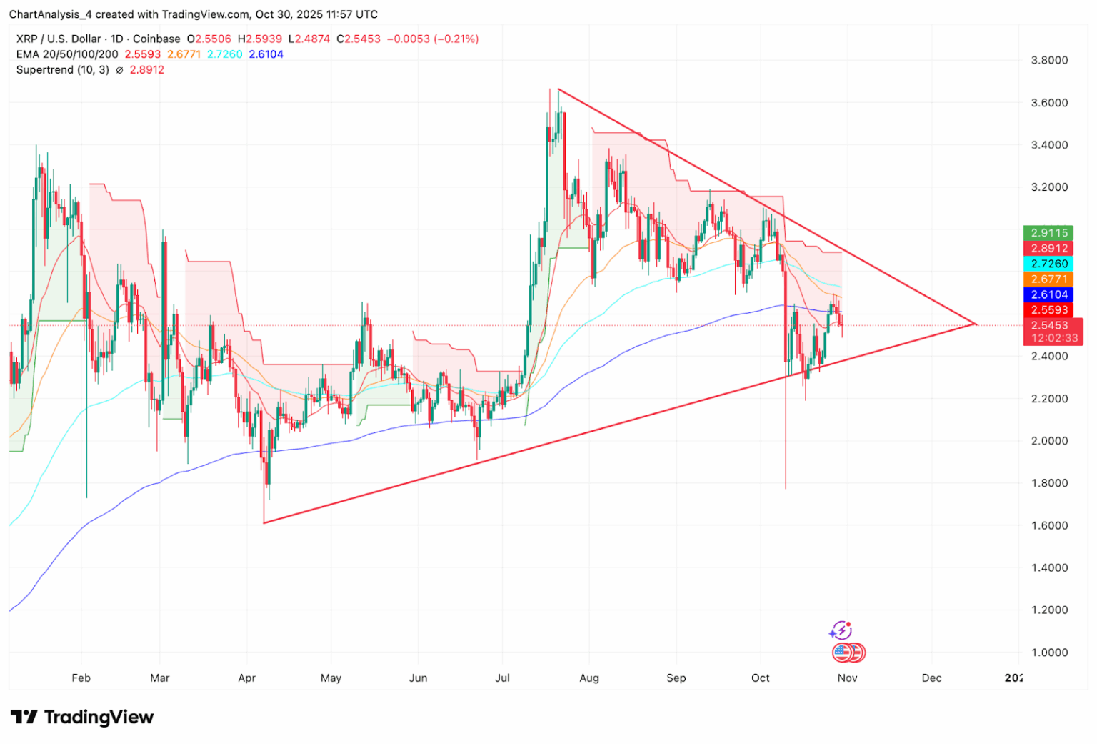 XRP cotiza a 2.50 dólares de cara a noviembre, ya que los traders sopesan si el token puede replicar el repunte del año pasado. Las señales técnicas y los patrones históricos de noviembres anteriores proporcionan contexto para lo que podría venir después.
