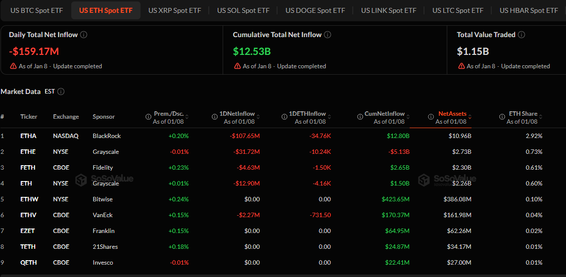 Funds managed by BlackRock recorded the largest outflows during the session. Its iShares Ethereum Trust (ETHA) saw about $107.65 million leave the fund. Grayscale Ethereum Trust(ETHE) followed with $31.72 million in outflows.