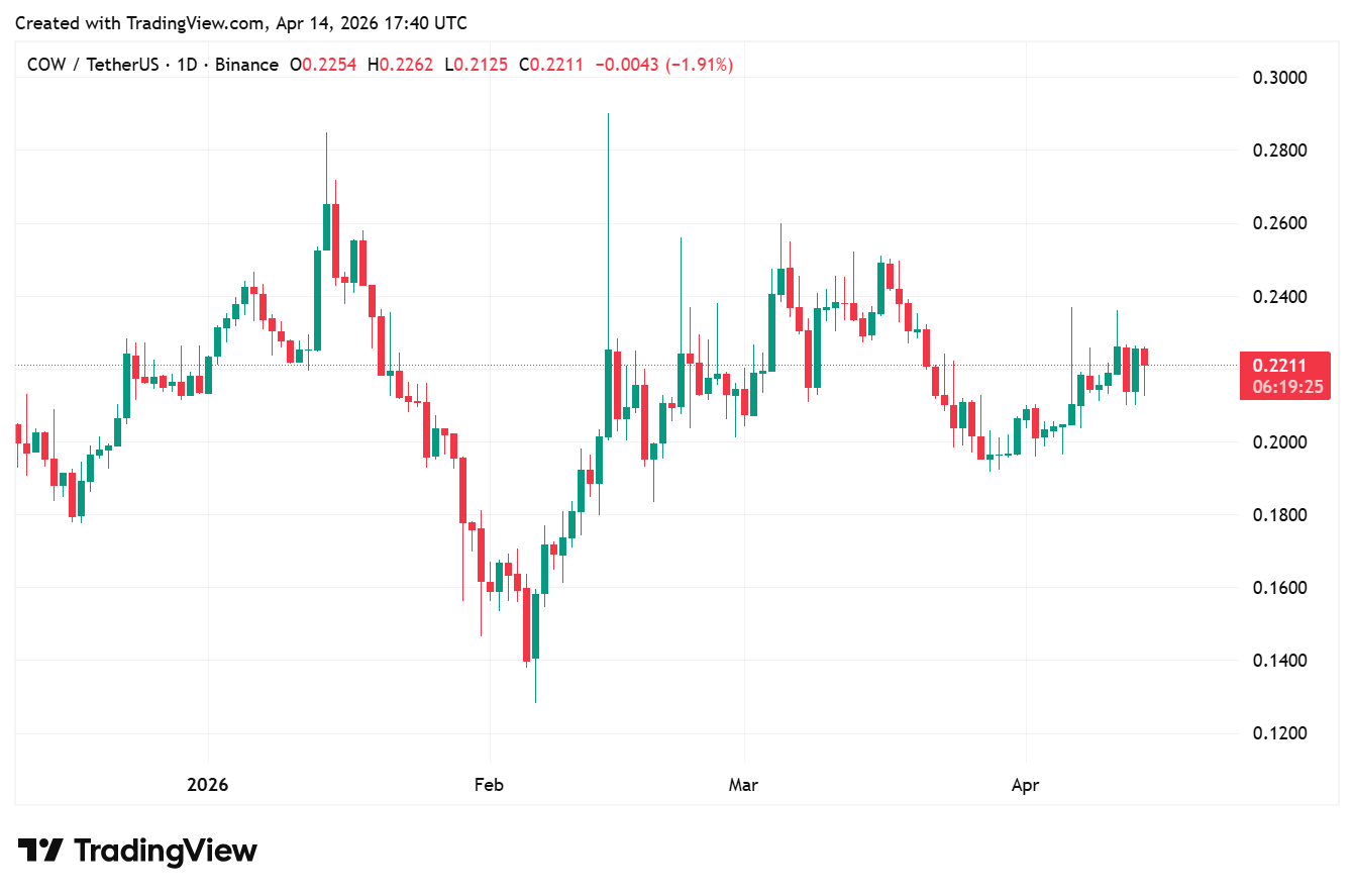 Le jeton a ensuite montré des signes de stabilisation à court terme. Au moment de la publication, le COW se négocie à 0,2211 $, en hausse de 3,94 % au cours des dernières 24 heures. Malgré tout, le sentiment reste prudent alors que l’incident sécuritaire continue de se dérouler.