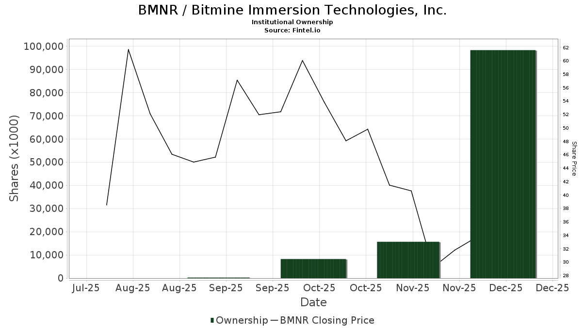 Le soutien de la société par les investisseurs institutionnels, menés par Ark Invest, se manifeste par l’accumulation notable de ses actions. Au cours du mois dernier, les investisseurs institutionnels ont augmenté la participation des actions BitMine de 15 à 95 millions. De plus, il y a 359 positions longues contre deux positions courtes.