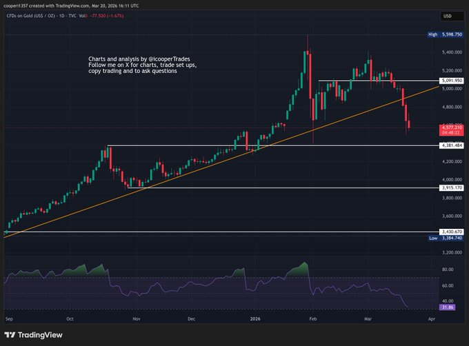 • Gold fell to $4,489, down 3.5% on the day and nearly 18.5% from its February peak of $5,627.