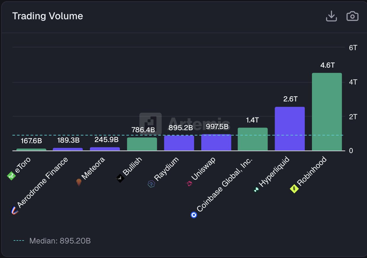 - Hyperliquid surpassed Coinbase, reaching $2.6 trillion in trading volume, nearly double the total.