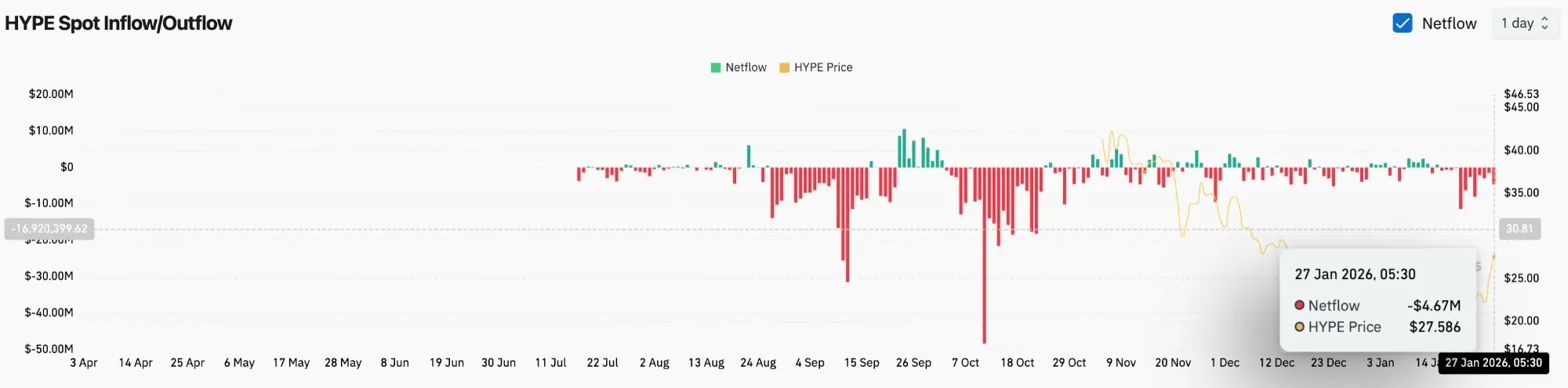 Exchange flow data confirms buying conviction. Coinglass recorded $4.67 million in net outflows on January 27, meaning tokens are moving off exchanges into private wallets during the rally.