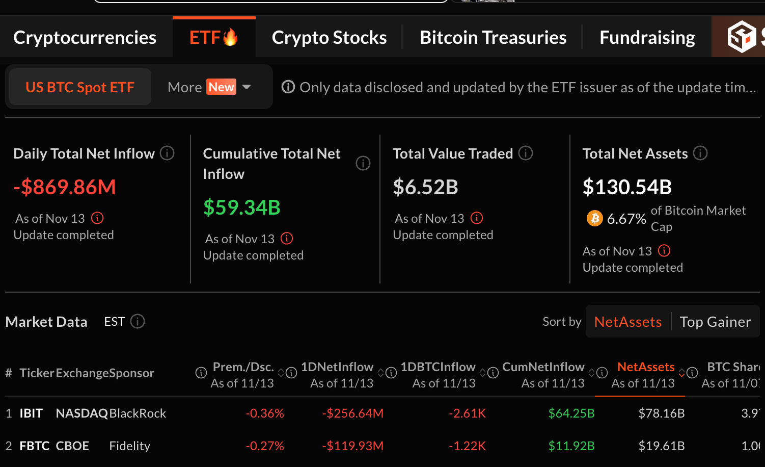 Pada penutupan bisnis pada hari Kamis, ETF Bitcoin AS mencatat arus keluar sebesar $869 juta.