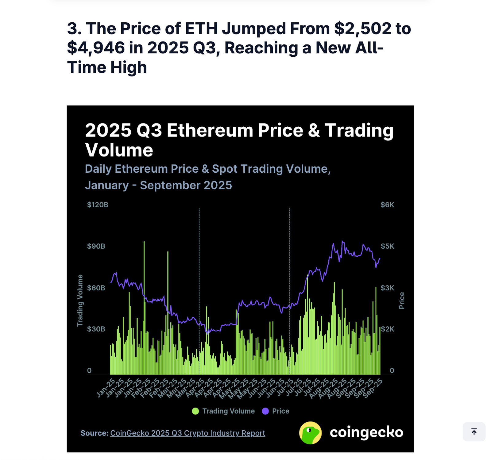 Ethereum melihat salah satu kuartal terbaiknya dalam beberapa tahun, naik 68,5% hingga akhir September mendekati $4.215 setelah sempat menyentuh $4.946. Laporan tersebut mengaitkan kinerja Ethereum dengan partisipasi institusional yang lebih tinggi dan meningkatnya daya tarik dana yang diperdagangkan di bursa (ETF) berbasis Ethereum.