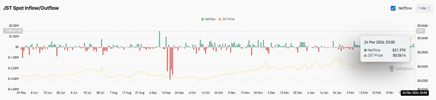 - JST holds strong above key support, maintaining a clear bullish market structure