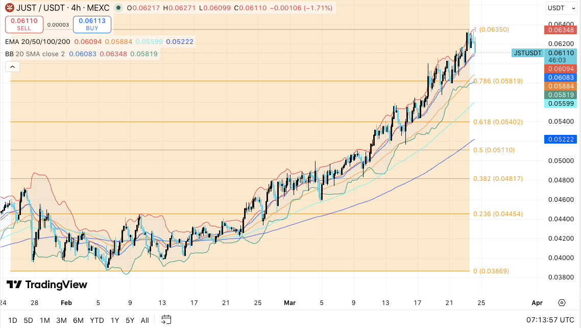 However, failure to hold $0.0608 could shift sentiment quickly. A breakdown may expose JST to $0.0582 and potentially $0.0540. Consequently, this would weaken the current bullish structure and signal a deeper correction phase.
