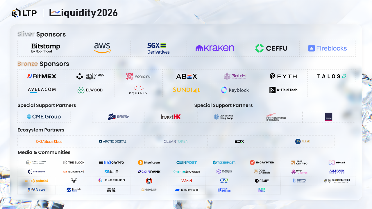 The summit has garnered strong support from some of the world’s leading institutions, market infrastructure providers, and industry organizations. Silver sponsors include Bitstamp by Robinhood, AWS, SGX, Kraken, Ceffu, and Fireblocks, underscoring the deep institutional investment in trading, custody, cloud services, and market infrastructure. Bronze sponsors such as BitMEX, Anchorage, Komainu, ABEX, Gold-i, Pyth Network, Talos, Avelacom, Elwood, Equinix, Sundial, Keyblock, and A-Field Tech represent key expertise in areas such as execution, connectivity, custody, risk management, and institutional trading technology. Furthermore, Liquidity 2026 benefits from special support from partners like CME Group, as well as supporting partners including HKSI, InvestHK, CFA Institute, AIMA, and the FinTech Association of Hong Kong (FTAHK). The event is also backed by ecosystem partners such as EDX, Alibaba Cloud, Arctic, ClearToken, Certik and AlfaR, collectively contributing to the creation of a comprehensive institutional dialogue on the future of multi-asset and digital market infrastructure.
