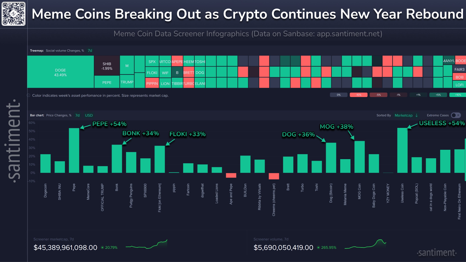 The meme coin sector is showing renewed strength after the holidays, with fresh data pointing to a strong rebound across several major tokens.