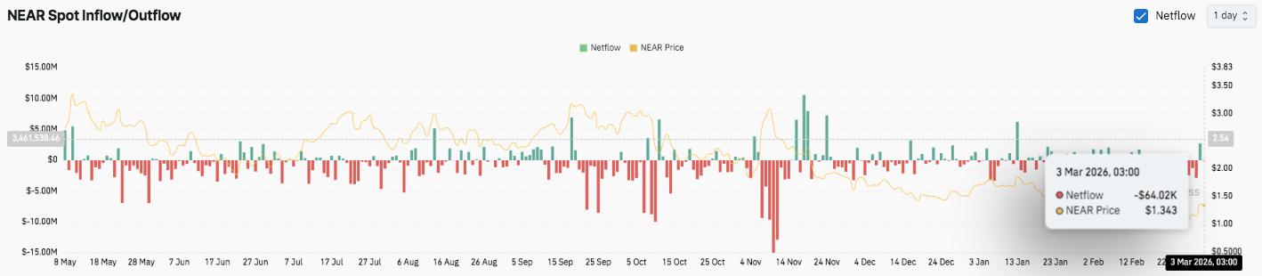 NEAR price in early March depends on buyers defending $1.26 long enough to challenge $1.40–$1.45. Open interest trends and spot flows indicate cautious accumulation, which could support a continuation toward $1.50–$1.55 if bullish momentum strengthens. Conversely, failure to hold key support at $1.26 could open the path toward $1.20 and $1.14, threatening the short-term bullish case.