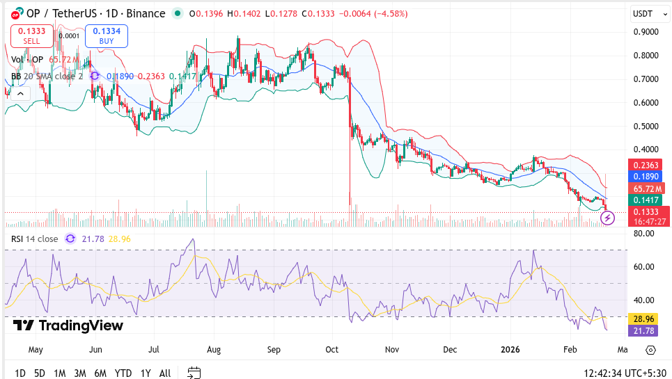OP dropped nearly 25% in 24 hours after Base revealed it is moving away from the OP Stack to its own unified technical stack. The sell-off pushed OP toward $0.12, as investors quickly reassessed the long-term impact on Optimism and its Superchain ecosystem.