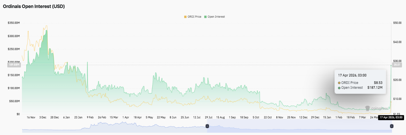 Key levels remain clearly defined as ORDI enters a critical consolidation phase after its explosive rally.