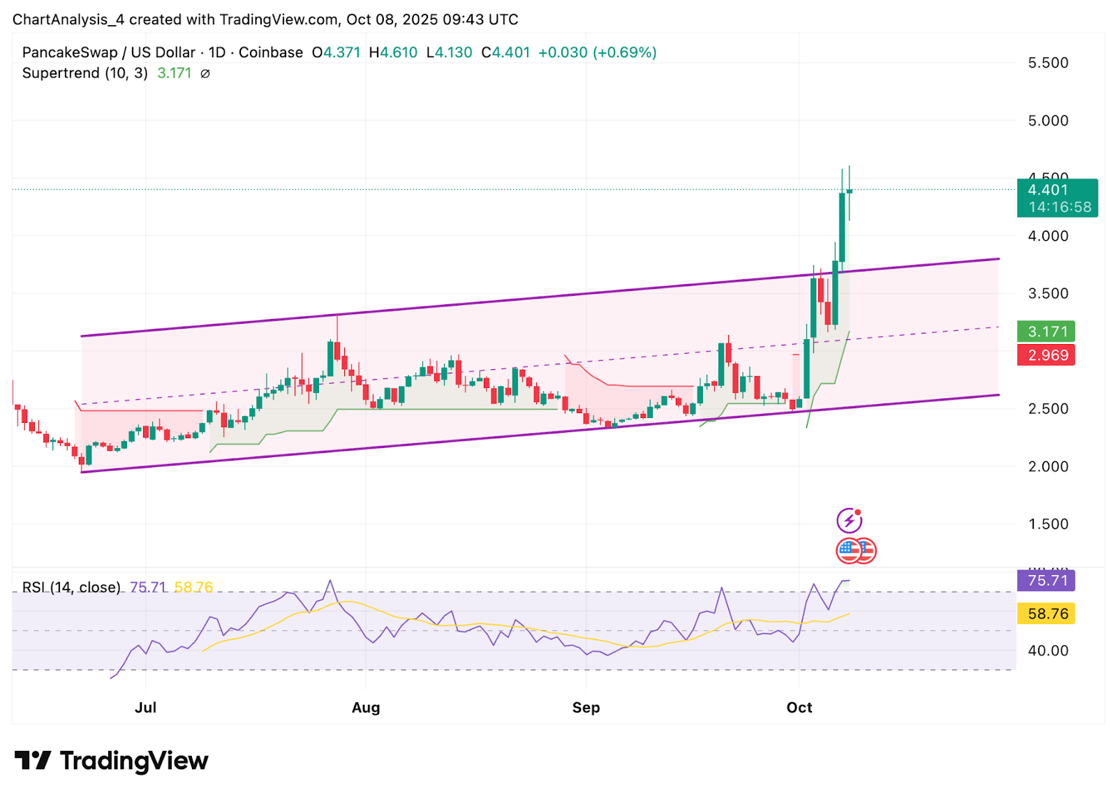 Assuming broader altcoin sentiment improves, PancakeSwap may build a consistent base above $5.00. Historical zones of interest around $5.60 and $6.70 could act as milestones if volume supports accumulation. Volatility may spike if macro conditions shift, but price may remain supported above $4.20.