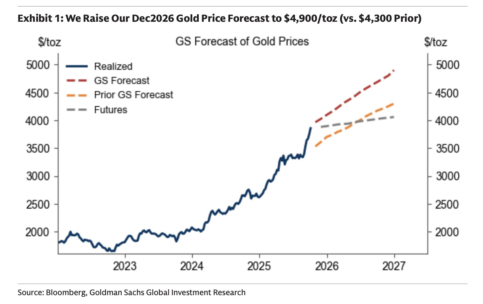 Major banks and funds remain divided on Bitcoin’s next move. Goldman Sachs recently raised its 2026 gold target to $4,900 per ounce, citing institutional demand and geopolitical tensions.