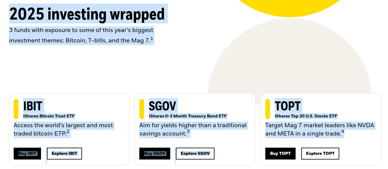 No centro desse tema está o IBIT, o iShares Bitcoin Trust ETF da BlackRock. O IBIT foi listado ao lado do SGOV, um ETF que acompanha títulos do Tesouro dos EUA de curto prazo, e do TOPT, um ETF focado nas maiores empresas de tecnologia americanas.
