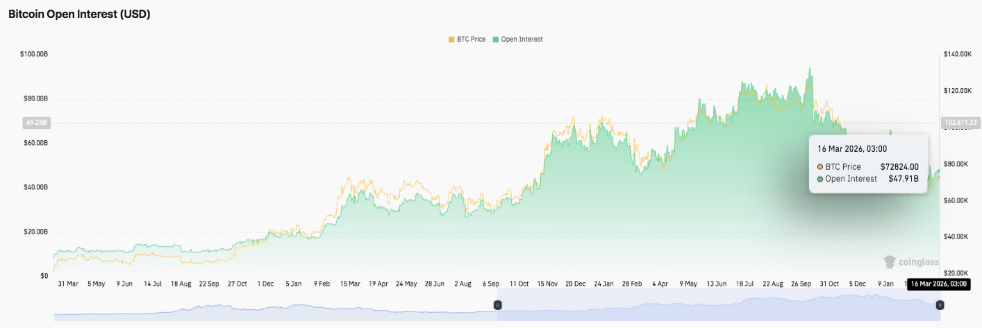 No entanto, dados recentes sugerem uma fase de resfriamento após o aumento do final do ciclo. O interesse aberto agora se estabiliza em níveis moderadamente elevados. Esse padrão frequentemente reflete um reposicionamento cauteloso antes do próximo grande movimento de preço.